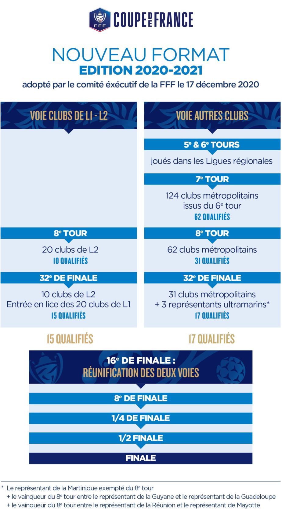Le Comité exécutif de la FFF réuni jeudi 17 décembre a validé les nouveaux formats des Coupes de France masculine et féminine pour la saison en cours.
