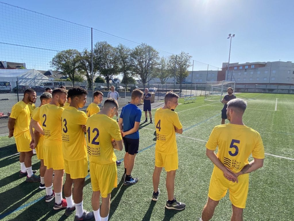 Après les tâches administratives, les tests COVID et essayages des équipements c’est parti pour une nouvelle saison. Un groupe jeune, le « doyen » étant Jordan Robin 23 ans, qui va découvrir le championnat National 3 sous la houlette de Guillaume Allanou assisté de Nathan Guinard, Stéphane Guérin et Jean-Pierre Le Gal.